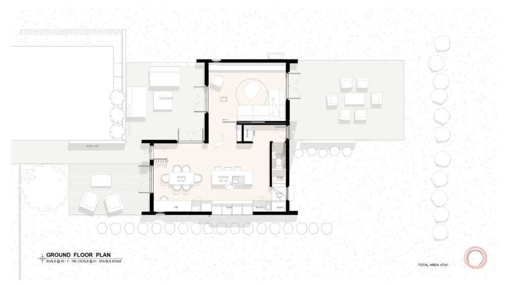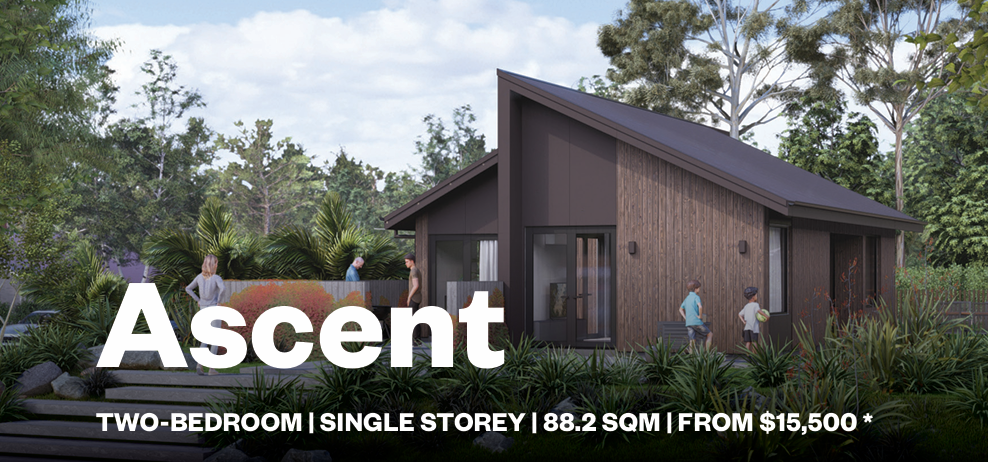 A smart, compact home designed for solo dwellers, couples, downsizers or small families. The Ascent design combines simplicity and high performance in a compact footprint, with open plan living, great indoor-outdoor flow, and built-in adaptability.